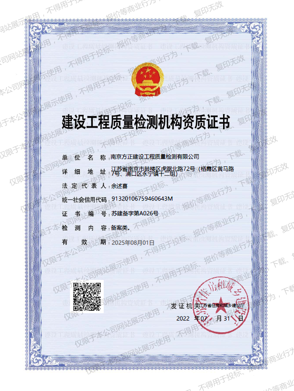 南京方正建設工程質(zhì)量檢測有限公司是1989年省建設廳批準成立的具有獨立法人資格的專業(yè)工程質(zhì)量鑒定及檢測機構,具有中國合格評定國家認可委員會實驗室認可CNAS資質(zhì)、省建設廳核準的見證取樣類檢測、專項類檢測及備案類檢測資質(zhì),省質(zhì)量技術監(jiān)督局資質(zhì)認定CMA資質(zhì),省地理測繪信息局測繪資質(zhì),被省建設廳評為2010年度、2011年度、2012年度A級信用等級單位,是入選《全省中小學校舍安全工程抗震鑒定機構名錄》的鑒定機構, 是入選江蘇省人民法院委托鑒定機構電子信息平臺的鑒定機構...